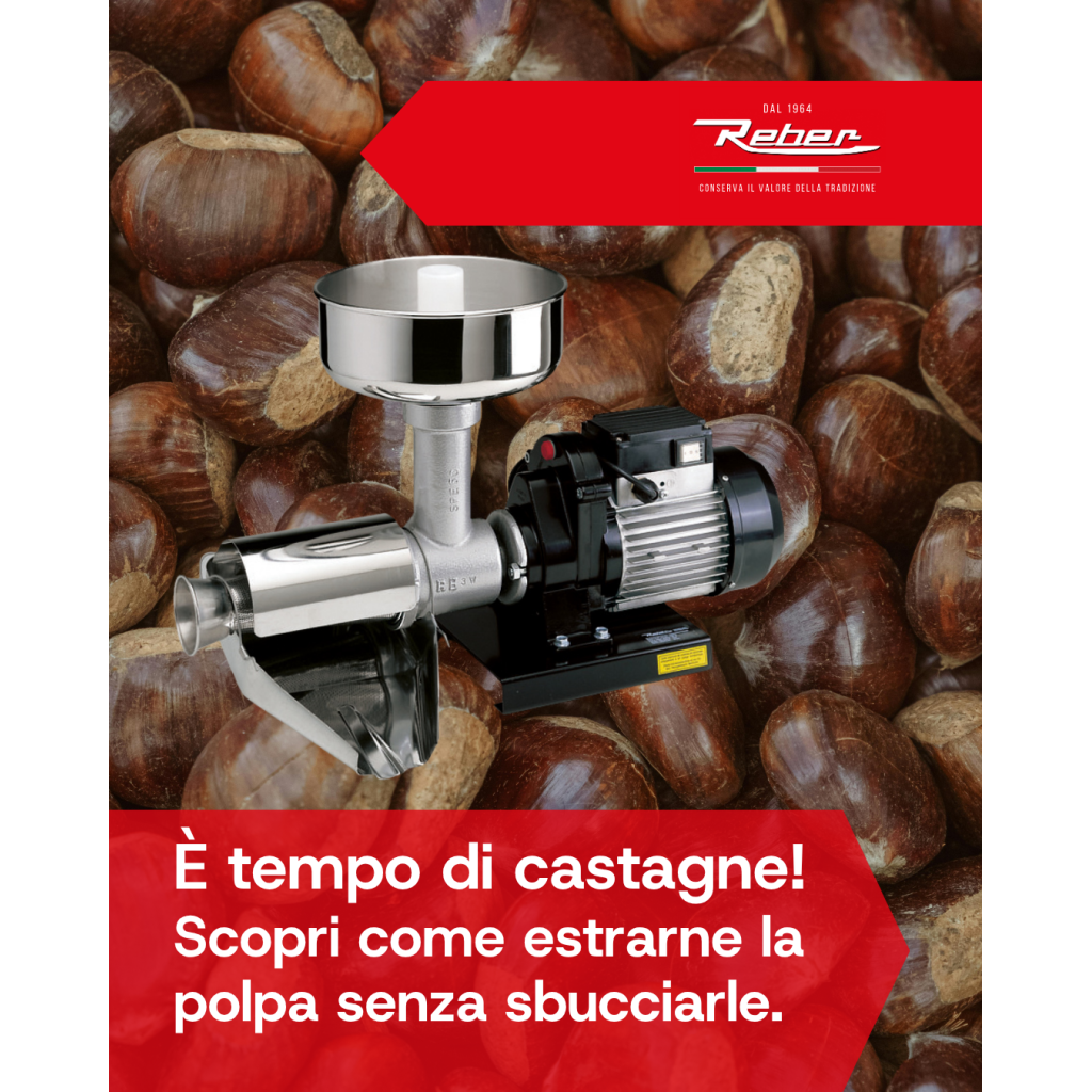 I passapomodoro Reber sono perfetti tanto per l’uso professionale quanto per quello domestico: i motori in dotazione sono progettati per il funziamento continuo e i componenti sono facili da smontare e pulire. Non solo salsa di pomodoro, ma conserve, marmellate e succhi di frutta. Corpi spremipomodoro in ghisa verniciata con polveri epossidiche applicate in forno a 300° o in resina acetalica per uso alimentare. Elica di spremitura in resina acetalica resistente fino a 150° adatta al pomodoro cotto e crudo.