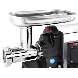 – Riduttore a bagno d’olio tipo Long Life, che non necessita di manutenzione o sostituzione/rabbocco, idoneo al contatto con gli alimenti – Motore a induzione per funzionamento continuo – Corpo in ghisa verniciata con polveri epossidiche applicate in forno a 300° per uso alimentare – Elica di spremitura in resina acetalica resistente fino a 150° – Cono filtro, Imbuto, Sgocciolatoio in acciaio INOX AISI 303 – Perno di traino con molla realizzato in acciaio – Carenatura motore in acciaio INOX AISI 430