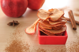 Taglia le mele a fettine sottili, cospargi con la cannella e disponile sui vassoi.